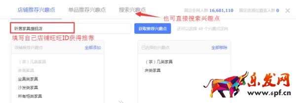 可以輸入某個(gè)店鋪旺旺來(lái)獲取相應(yīng)興趣點(diǎn),一般輸入自己的店鋪旺旺即可!也可以直接直接搜索關(guān)鍵詞,添加相應(yīng)的興趣點(diǎn)。