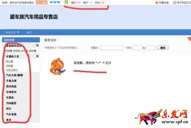 一個偶然的機會這個店主來到我們這,聯系到我,那個時候應該是2015年的12月初。我看了他的店鋪,可以截個圖給大家看看,雖然寶貝全部下架了,但是大家可以發現這個店鋪的產品很多很雜,雖說是汽車用品,但是非常雜亂,這是完全背離淘寶小而美的發展趨勢的。