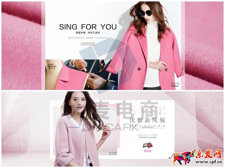 圖案型海報就是從衣服本身的圖案、花紋、紋理等其中提取出來作為背景紋理或者點綴主元素使用。這樣的海報設計更能體現出衣服的與眾不同,把衣服特有的賣點給放大呈現出來,圖案特點可處理或可不處理呈現,以海報要呈現的效果為主。下面圖一就是把衣服上的圖案放在背景兩側襯托出衣服的賣點,圖案本身并沒有做出大的處理調整。而圖二是做把衣服上的圖案處理成一種油畫感覺作為海報背景。