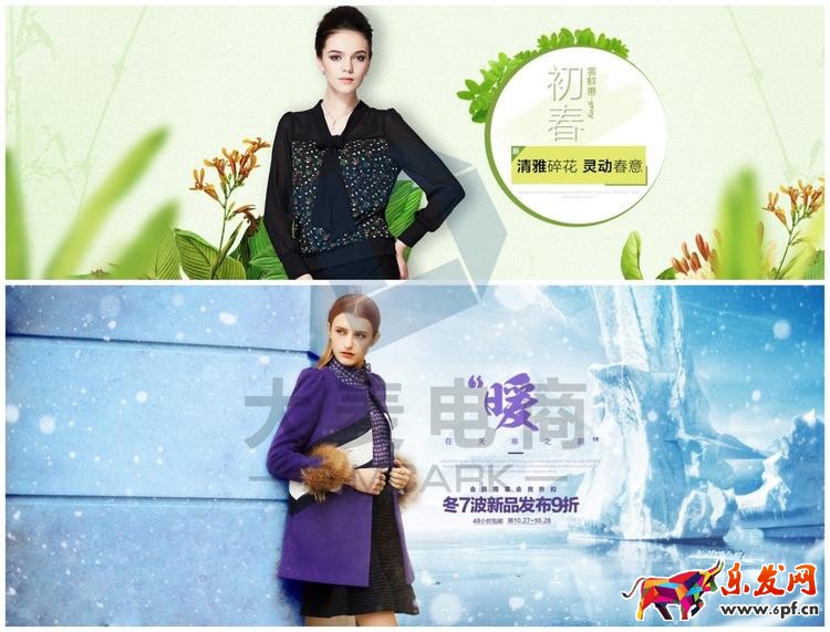 對于女裝來講,是一個隨著季節、氣候的變化而變化,不斷推出應季的新產品,春夏秋冬四季都會遇到要做些應季的海報設計,當然不同季節有不同的氛圍,例如春季:春意盎然、萬物復蘇;夏季:夏陽酷暑、嬌陽似火;秋季:秋意深濃、天朗氣清;冬季:冬寒抱冰,白雪茫茫,海報可以通過這些季節獨有的氛圍來設計。