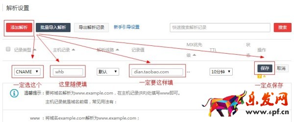 主機(jī)記錄:隨便填,例如 whb (但不要與你的其他二級域名重復(fù));