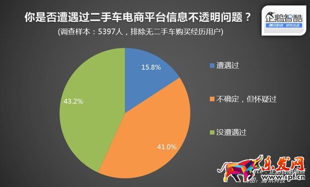 在有過二手車購買經(jīng)歷的用戶中,約16%用戶遭遇過信息不透明等問題。不確定但懷疑過的用戶,占比約41%。