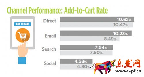 比如,去年第三季度,Monetate進行了多渠道營銷測試和個性化服務。據報告,網站直接訪客提供的“加入購物車”率為10.62%,郵件營銷客戶帶來的“加入購物車”率為10.23%,來自搜索引擎客戶的“加入購物車”率是7.54%。