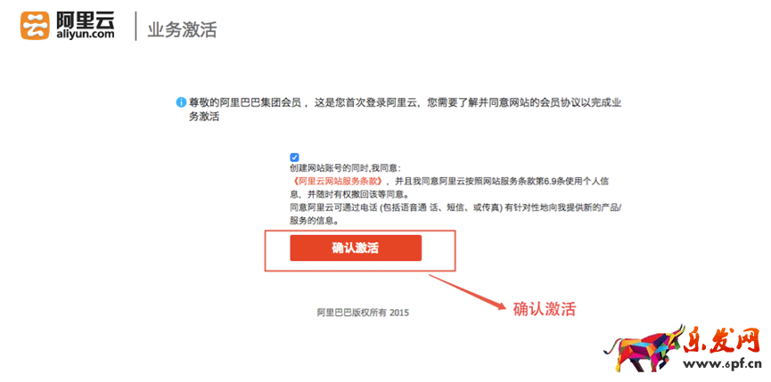 第二步,激活阿里云賬號,并簽署協議: