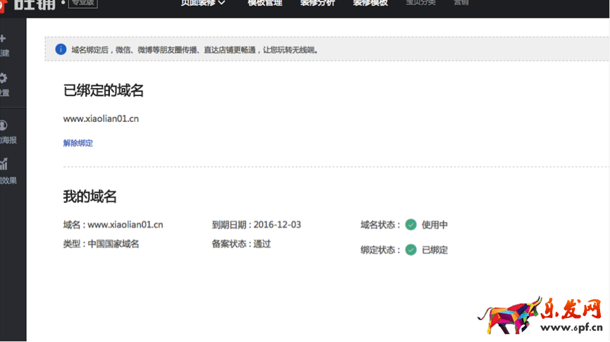 第四步,點擊“立即綁定”完成頂級域名和微海報的綁定:
