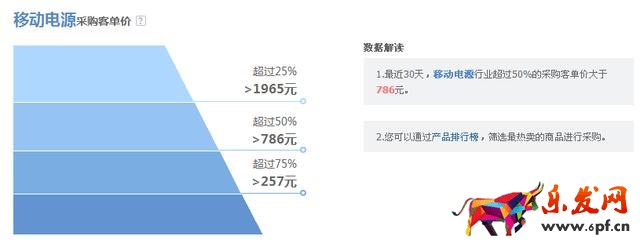 以圖可以看出,最近30天,移動電源行業超過50%的采購客單價大于786元。您可以通過產品排行榜,篩選最熱賣的商品進行采購。