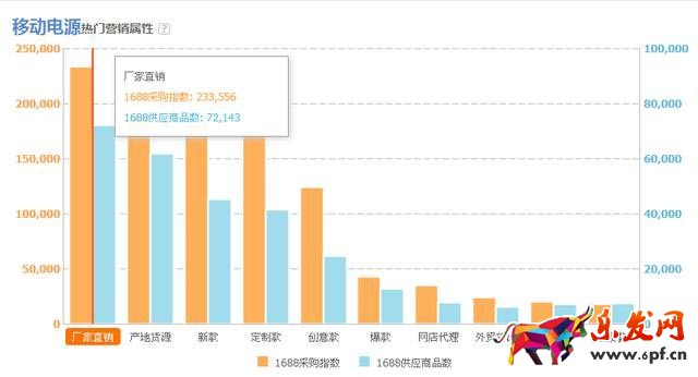 從上圖可以看出最近30天,移動電源行業的熱門營銷屬性為: 廠家直銷,產地貨源, 新款,定制款,創意款;