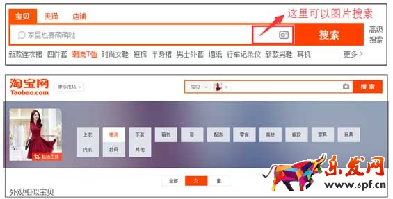 從去年開始,我們就知道:淘寶會重點(diǎn)扶植新品。這個(gè)新品可不是新上架的商品,而是真正的在淘寶上有很少的同款(相似款),最好是獨(dú)一無二的,這樣的寶貝一定可以在新品期獲得更多的新品流量扶植。那么,淘寶怎樣才能認(rèn)定你是新品呢?首圖就是一個(gè)極其重要的判斷標(biāo)準(zhǔn)??聪旅孢@兩張圖,從搜索框里面,那個(gè)照相機(jī)圖片的地方,點(diǎn)擊就可以搜索圖片。在搜索結(jié)果中,這種“外觀相似寶貝”的數(shù)量越少,你的寶貝就越新,就越會得到搜索引擎的青睞。