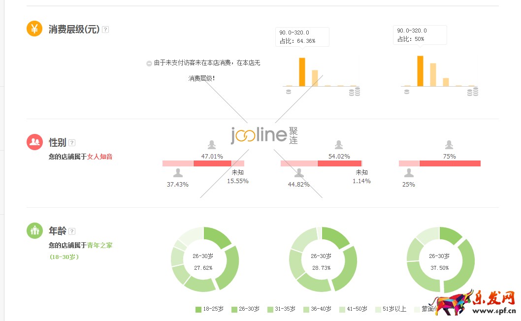 我們主要結合這些特征設置自定義人群,主要是沿海發達地區的青年人群,女性居多,所以在說明提貨方面最好更方便,再結合之前店鋪動態評分就可以建議掌柜完善一些,促使下單,減少買家顧慮, 在結合店鋪流量的同時設置好上下架時間,然后做聚劃算活動,這樣能促使下單。