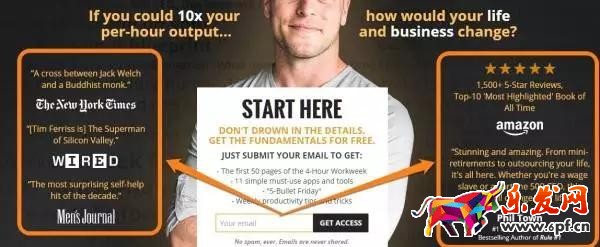 Tim Ferriss的網(wǎng)站是一個很好的例子: