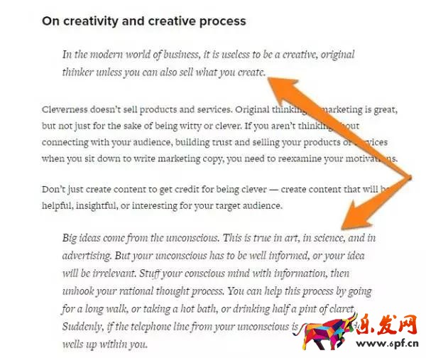 在你的內(nèi)容中引用一個權(quán)威是另一種方法,從你所在領(lǐng)域公認(rèn)的權(quán)威統(tǒng)計數(shù)據(jù)(就像我一樣)。例如,博客引用了David Ogilvy討論創(chuàng)造力和寫作: