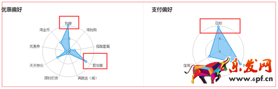 還有一個發現就是:他們喜歡包郵的,喜歡上聚劃算,喜歡天天特價,會習慣用“花唄”來支付(當然,有人質疑這個準確性,暫且不管,我們相信阿里的大數據部門,以后這種數據的降噪處理,一定會越來越專業)!這些都是符合這部分人群特征的。