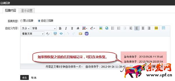6.自定義招牌可以自由的輸入代碼,如果店招自定義區內什么都沒有是空白 店招就會“消失不見”