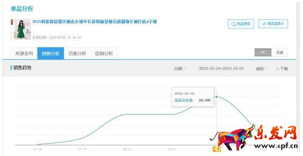 對訪客數(shù)據(jù)分析,如下圖,淘寶清倉活動預(yù)熱期到結(jié)束前一天,訪客數(shù)據(jù)及流量已達到高峰期,并且活動結(jié)束后,流量下降速度相當緩慢。