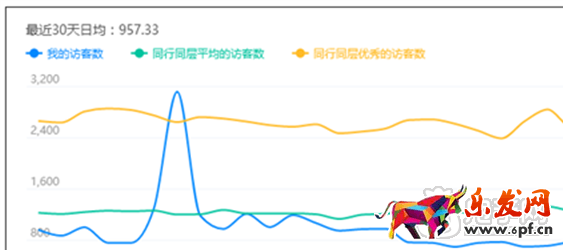 一般情況下,這個(gè)流量有沒有問題要綜合考慮。首先,這條線肯定是越高越好,但是一條健康的線應(yīng)該是在行業(yè)均值以上,優(yōu)秀線以下,也就是說藍(lán)線應(yīng)該在綠線和橙色線之間。這基本可以說你的訪客是正常的,是沒有問題的,如果一直在行業(yè)均值以下,那么你的訪客肯定出問題了。