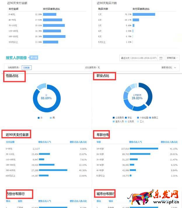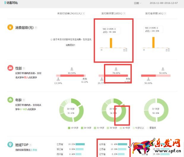 以上數據重點我都用紅框標注出來了,你可以通過這些數據分析店鋪的人群進而決定店鋪的定位(即B格)到底應該怎么確定。如果你仍然不會分析,可以來找我,可以帶著你分析一遍。