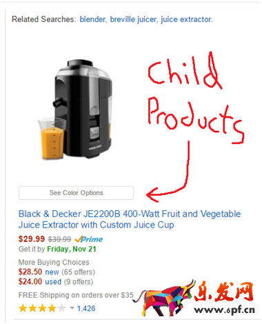 有利于用戶體驗,用戶留在同一個頁面里,讓他們更有可能購買你的產品。亞馬遜的排名傾向于那些在listing有多個選項的產品,比如下面這個: