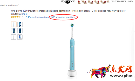 已回答的問題這個數據對轉化率有著重要意義。比如搜索“electric toothbrush”,排在第一的Braun電動牙*有366個已回答的問題:
