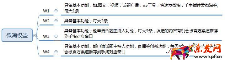 今年出臺微淘權益,根據微淘躍粉絲數,新增活躍粉絲數,圖片質量,月發布數量等維度給微淘商家打分,劃分層級,包含W1,W2,W3,W4;不同層級可以發布的微淘數和獲得的功能有所差別: