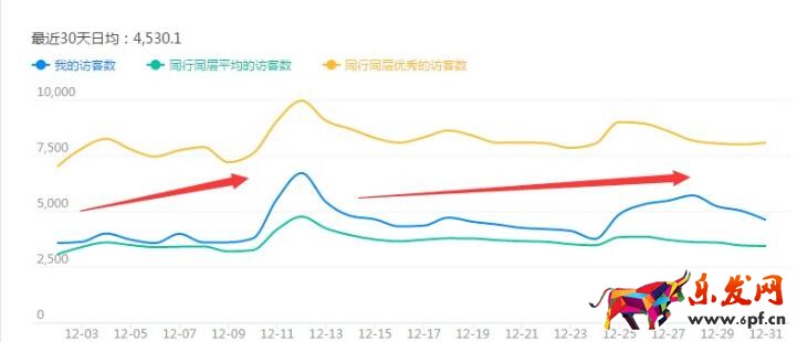 都是在我們運營做完優化后,上漲后有一定的回落,這個也正常,但是回落數據也比上升之前是要高的,春節后,我的訪客就持續高于我同層優秀了。目前這個店鋪的搜索訪客數據就是:上升-回落一點-穩定-再上升-再穩定。