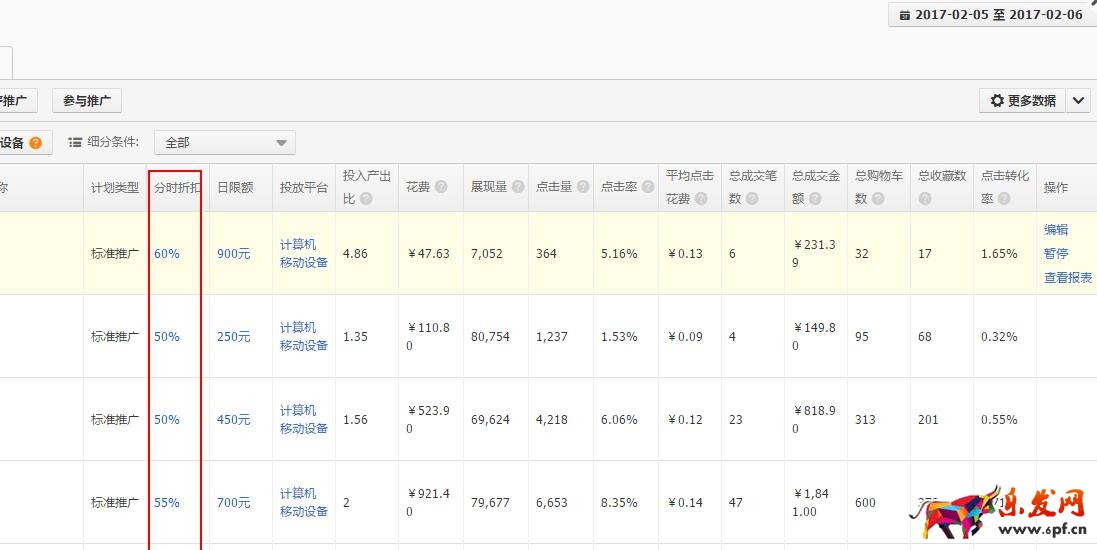 從上圖就能看見我用的分時折扣方法,直接看著銷售額來降低,這種是最快速的,這個還是比較基礎的了,上面直通車報表為什么是開始呈遞減然后是遞增的呢,那是因為我根據大盤流量趨勢10%10%地先降分時折扣,春節過后又根根據銷售額來10%5%地往上加。為什么不限額控制花費呢,因為我發現限額控制花費它的PPC很高,拿的流量很少,而直接分時折扣這樣它的點擊率照樣很高,而且PPC低得真的讓人歡喜。