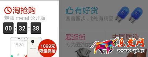 各位商家在報名參加淘搶購活動時,可以額外上傳一張商品素材圖,將有機會在手淘首頁的淘搶購業(yè)務(wù)入口展現(xiàn)而獲得超大流量(買家對某個類型的商品感興趣,就會推薦在活動當(dāng)天上線的相關(guān)商品,千人千面,每個買家會看到不同的商品,例如買家對鞋的商品比較感興趣,就會推薦當(dāng)天鞋類的商品),如下位置: