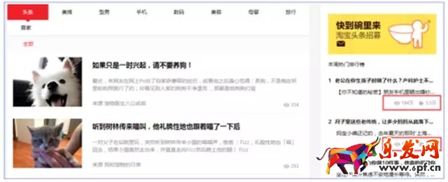 這是必須要做的了,找盡可能多的流量入口去嘗試。現在這種入口你應該可以的去增加,并且找一些重點入口,也去優化優化。因為對于關鍵詞搜索而言,各種規則已經很成熟了,優化的空間有限。但是很多其他的流量入口,想要優化的話,也許還有一些空間可以做。舉個簡單的例子,淘寶頭條: