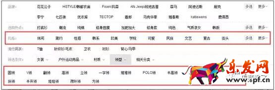 我們看這些,這些都是屬性層面的,比如風格和領型這兩個,不同風格的衣服面對的目標顧客群是不一樣的,不同的領型面對的目標顧客群也是不一樣的。比如說,喜歡性感風格的消費者可能對民族風的完全是不感冒的;一直穿翻領的消費者可能對于圓領是不感冒的。
