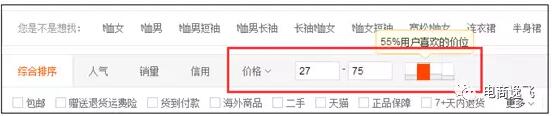 這個是很多時候,是淘寶運營人員界定競爭對手的主要維度,就是同一個價格段位的產品是互相競爭的。這個是比較容易理解的,因為不同的經濟水平必然會決定不同的消費檔次,這一點在淘寶的搜索結果頁面也通過價格柱體現出來。所以,你在界定競爭對手的時候,關于價格層面可以直接通過價格柱去卡!