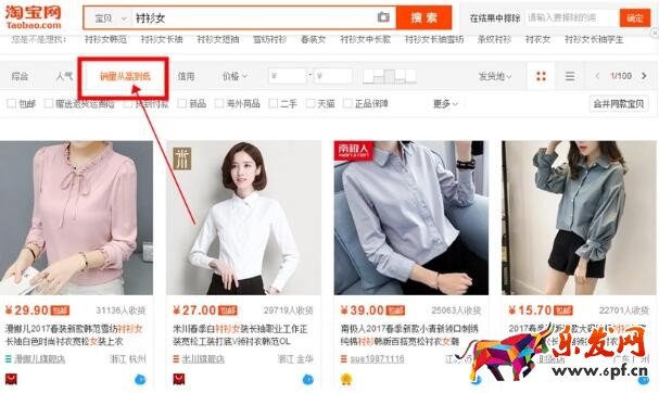 圖5是搜索襯衫女出來的按照銷量從高到低排序的結果頁面。