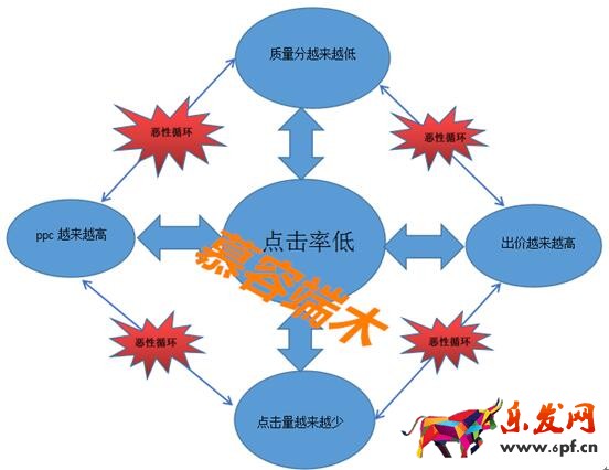 從圖上我們可以明顯的看到點擊率低的后果是非常嚴重的,而且這還是一個惡性循環(huán),而且沒有一個盡頭,所以點擊率是我們首先要優(yōu)化的因素。所以,點擊率是我們必須要坐上來的,想要把點擊率優(yōu)化上來,那我們首先要知道點擊率為什么這么低,知道原因了,才好解決。
