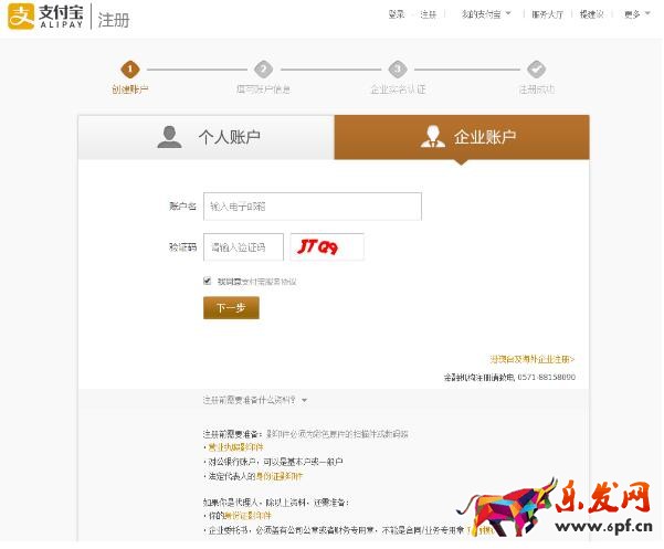 2、直接網頁打開支付寶登陸頁面進行注冊。點開注冊頁面選擇企業(yè)賬戶注冊,輸入自己的郵箱,淘寶會發(fā)一封郵件到你的郵箱。