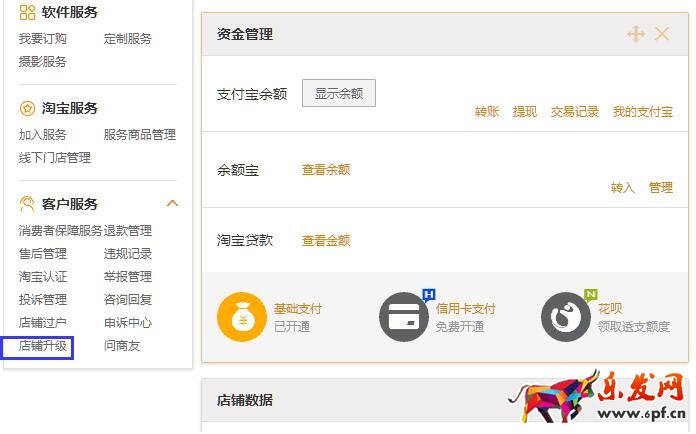 1、普通店鋪進行店鋪升級。首先打開你的賣家中心,點開你的客戶服務中的店鋪升級。
