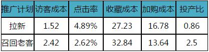 根據表數據可以看到,召回老客計劃的訪客成本明顯高于拉新,但轉化效果中投產比遠遠大于拉新。不妨再結合店鋪商品的毛利率,計算老客召回推廣的真實效益。