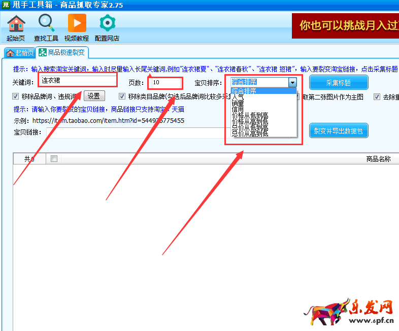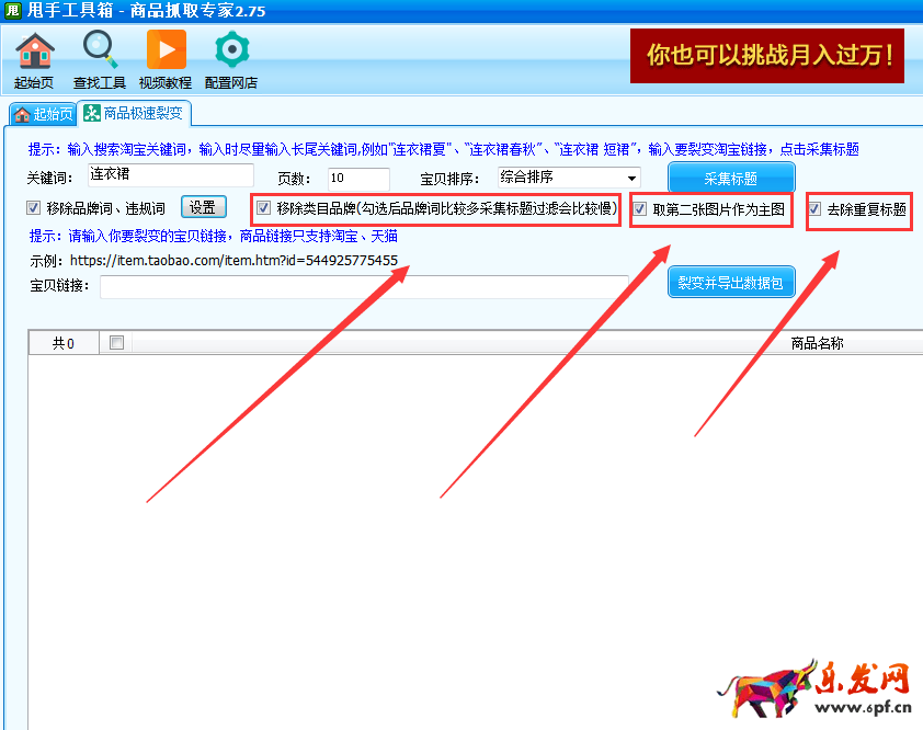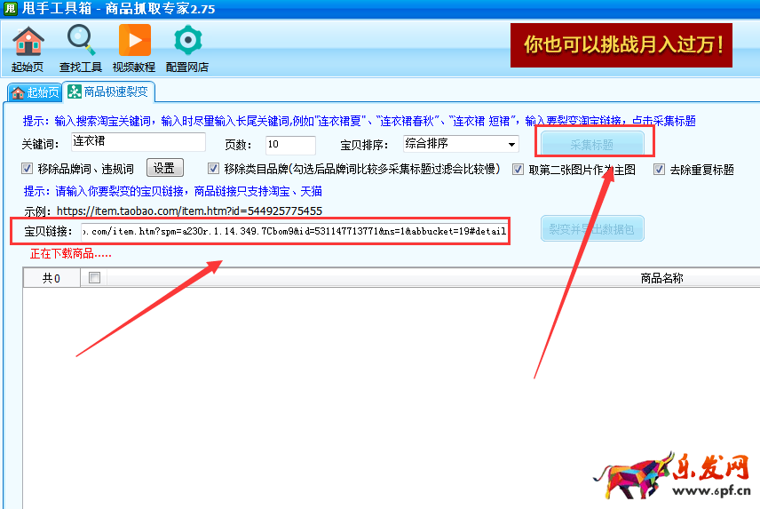 6.輸入要裂變的寶貝鏈接,選擇采集標(biāo)題。