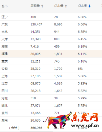 4.投放地域:打開直通車報表,地域列表,優選點擊率高的地域進行投放: