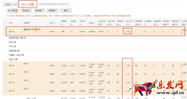 查看計劃的人群,查看多天數據,找到投入產出比最高的人群,并將這部分人群高溢價,其他低產出人群如果數據量小可以直接暫停或者刪除。