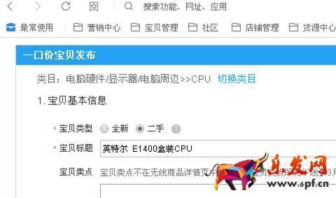 下面可以給寶貝分類,我這個填的是“CPU”.