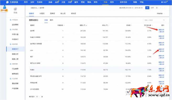 但是這100個詞無論是做標題,還是做直通車都太少了,而且還得刪掉跟你沒關系的詞,那如何擴展詞呢?在每一個詞的后面都有個“搜索分析”,點擊進入,相當于在“搜索分析”中搜索這個詞。
