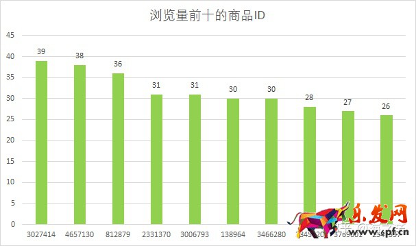 之后我們使用如下語(yǔ)句對(duì)購(gòu)買量前十的商品ID同樣進(jìn)行統(tǒng)計(jì)并繪圖: