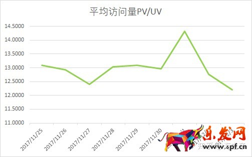 對(duì)應(yīng)到UV,平均訪問(wèn)量中我們可以發(fā)現(xiàn)2017年12月2日、3日的各項(xiàng)指標(biāo)同樣較為突出,我們首先懷疑這是由于周末節(jié)假日用戶的瀏覽、購(gòu)買意愿較強(qiáng),但是同樣是周末的11月25日、26日相較于其他日期并不突出,受限于數(shù)據(jù)的有效時(shí)間范圍,我們沒有更多的日期數(shù)據(jù)以供分析,但是通過(guò)查詢對(duì)應(yīng)日期的信息,我們發(fā)現(xiàn),2017年12月1日-6日正值淘寶“服飾煥新”活動(dòng),再次觀察數(shù)據(jù),我們發(fā)現(xiàn)不管是UV,PV,還是平均訪問(wèn)量,我們都可以看到12月1日之后各項(xiàng)指標(biāo)的增長(zhǎng),因此,盡管周末假期可能是導(dǎo)致指標(biāo)增長(zhǎng)的原因,我們更傾向于是節(jié)日活動(dòng)導(dǎo)致了數(shù)據(jù)的增長(zhǎng)。