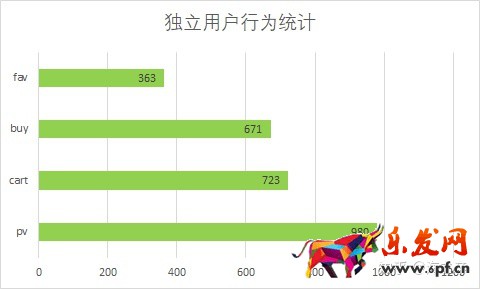 注意到上文我們并沒有統(tǒng)計(jì)獨(dú)立用戶個(gè)數(shù),而是統(tǒng)計(jì)了所有用戶行為,某一用戶可能既瀏覽,又繼續(xù)收藏、喜愛,最后購(gòu)買。因此我們繼續(xù)研究相應(yīng)的獨(dú)立用戶行為統(tǒng)計(jì),sql查詢語(yǔ)句如下所示: