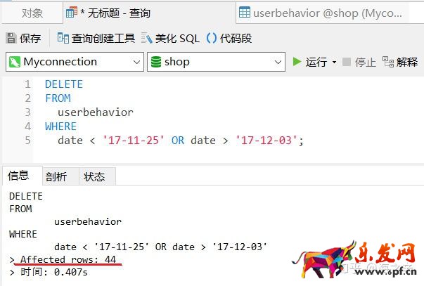 結(jié)果顯示共有44條記錄符合給定的sql查詢語(yǔ)句,之后我們將這些記錄刪除。