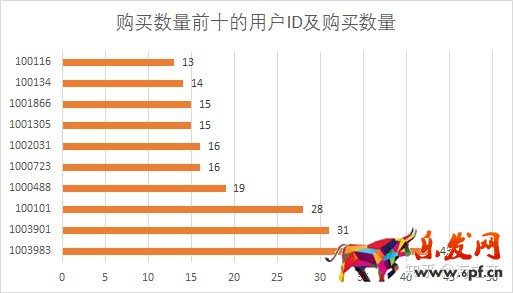 通過(guò)后續(xù)對(duì)用戶資料的研究,商家還應(yīng)關(guān)注于 '1003983', '1003901', '100101', '1000488', '1000723', '1002031', '1001305', '1001866', '100134', '100116' 這十位用戶ID的共同特征,為核心群體畫像提供參考。