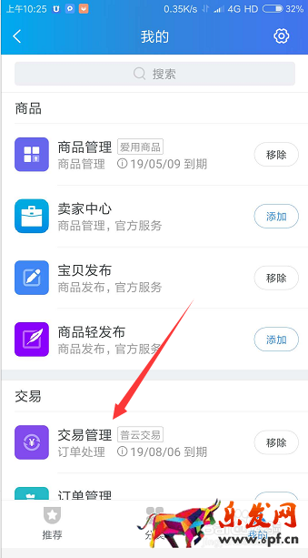 在我的里面,點擊交易管理。