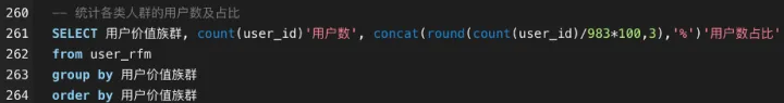 (4)統計各個族群的用戶數及用戶占比,對用戶運營現狀分析,給出運營策略方向。