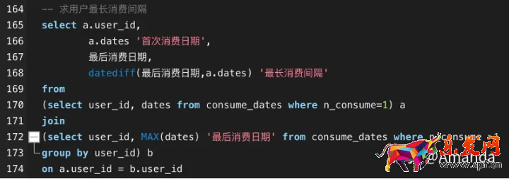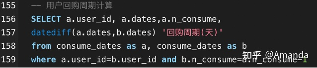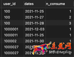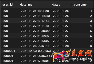 1) 通過【窗口函數】,將用戶的每一次消費動作按時間順序標號,即記錄第n次消費