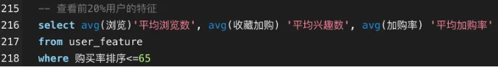 為求得20%的客戶,直接求得最后一名購買率,在其基礎上*20%即可,查詢語句如下: