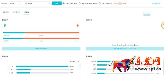 還有對(duì)應(yīng)的人群畫(huà)像更清晰分辨該詞下的人群、性別、年齡、地域分布、人群組合、消費(fèi)層級(jí)