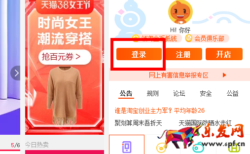 1、首先進(jìn)入淘寶官網(wǎng)后,選擇紅色方框中的“登錄”,如下圖所示:
